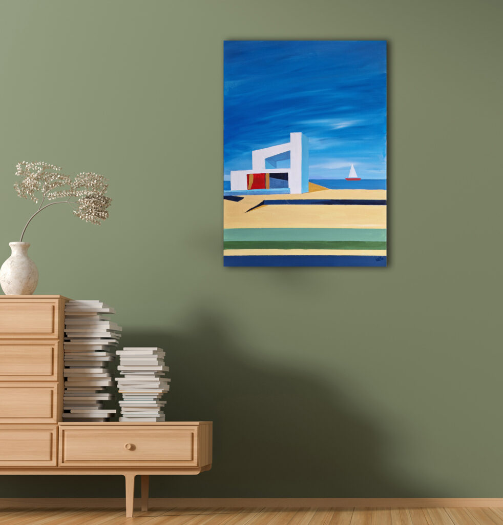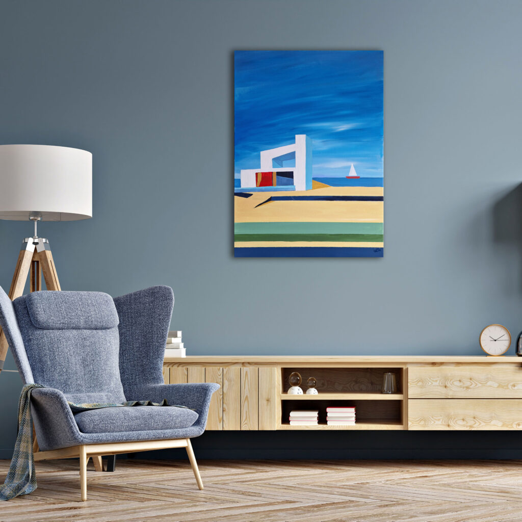 Mit Acrylfarben gemalt, Leinwand bespannt auf Keilrahmen, 70x50x1,5cm tief.